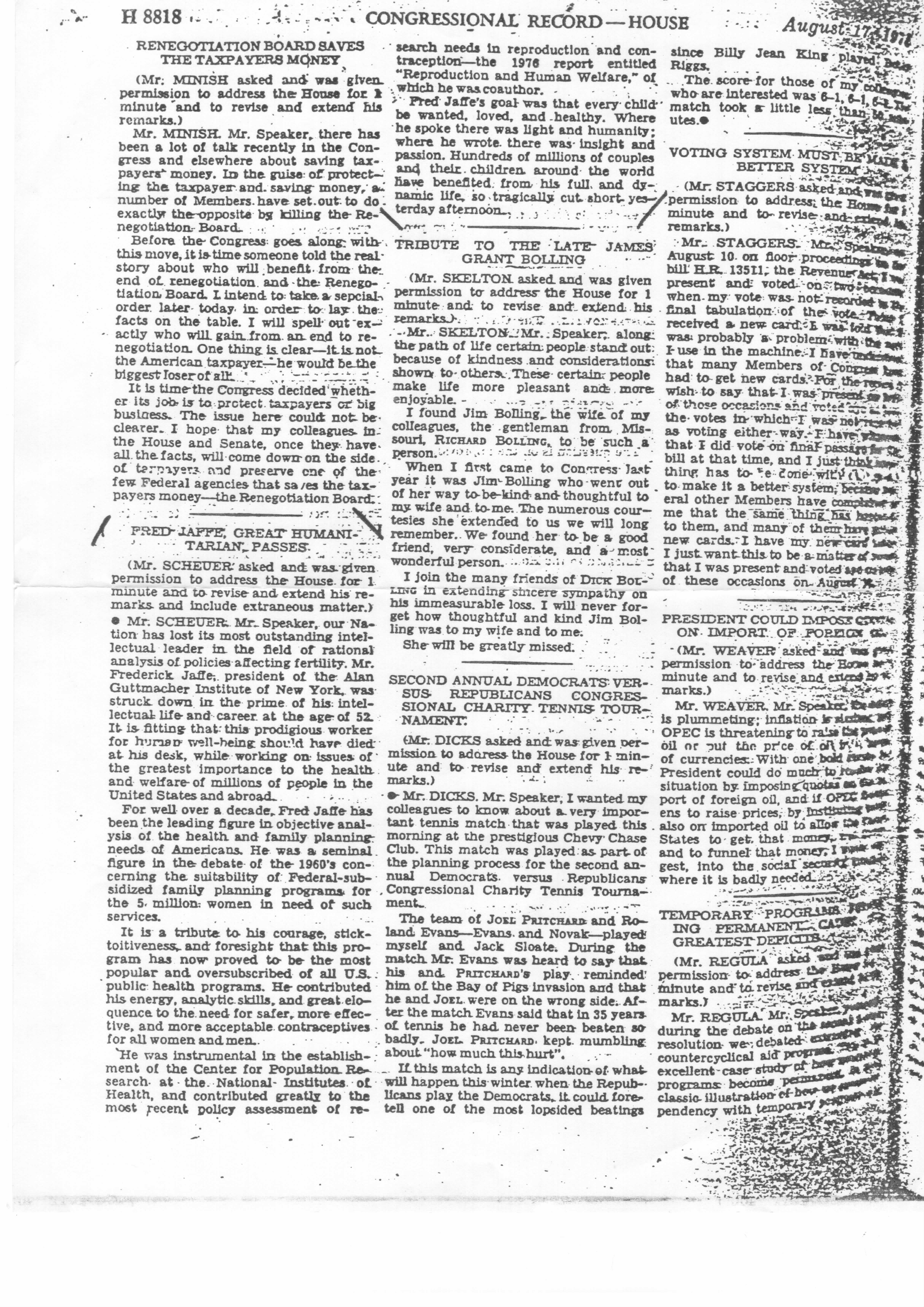 Frederick S. Jaffe was the Guttmacher Institute’s first president, from 1968 (when the Institute was founded as the Center for Family Planning Program Development) until his death in 1978. Among the Institute’s enduring successes during Mr. Jaffe’s tenure as president were its role in helping to create a national network of family planning clinics and its leadership in putting the issue of teen pregnancy on the policy agenda (see our 2008 Annual Report for more details). Some antiabortion activists have attempted to falsely link Mr. Jaffe to coercive population control measures by taking out of context parts of a memo he wrote in 1969. However, Mr. Jaffe’s memo merely summarized various population control measures others had proposed at the time; he did not endorse or otherwise condone coercive measures (the full memo is available here). Frederick Jaffe passed away in 1978 at age 52, in the prime of his career. A 1978 testimonial by then-Congressman James Scheuer (D-NY) in the Congressional Record honors Mr. Jaffe as the nation’s “most outstanding intellectual leader in the field of rational analysis of policies affecting fertility” whose “goal was that every child be wanted, loved, and healthy.” For more information on Frederick S. Jaffe, see his Wikipedia entry.