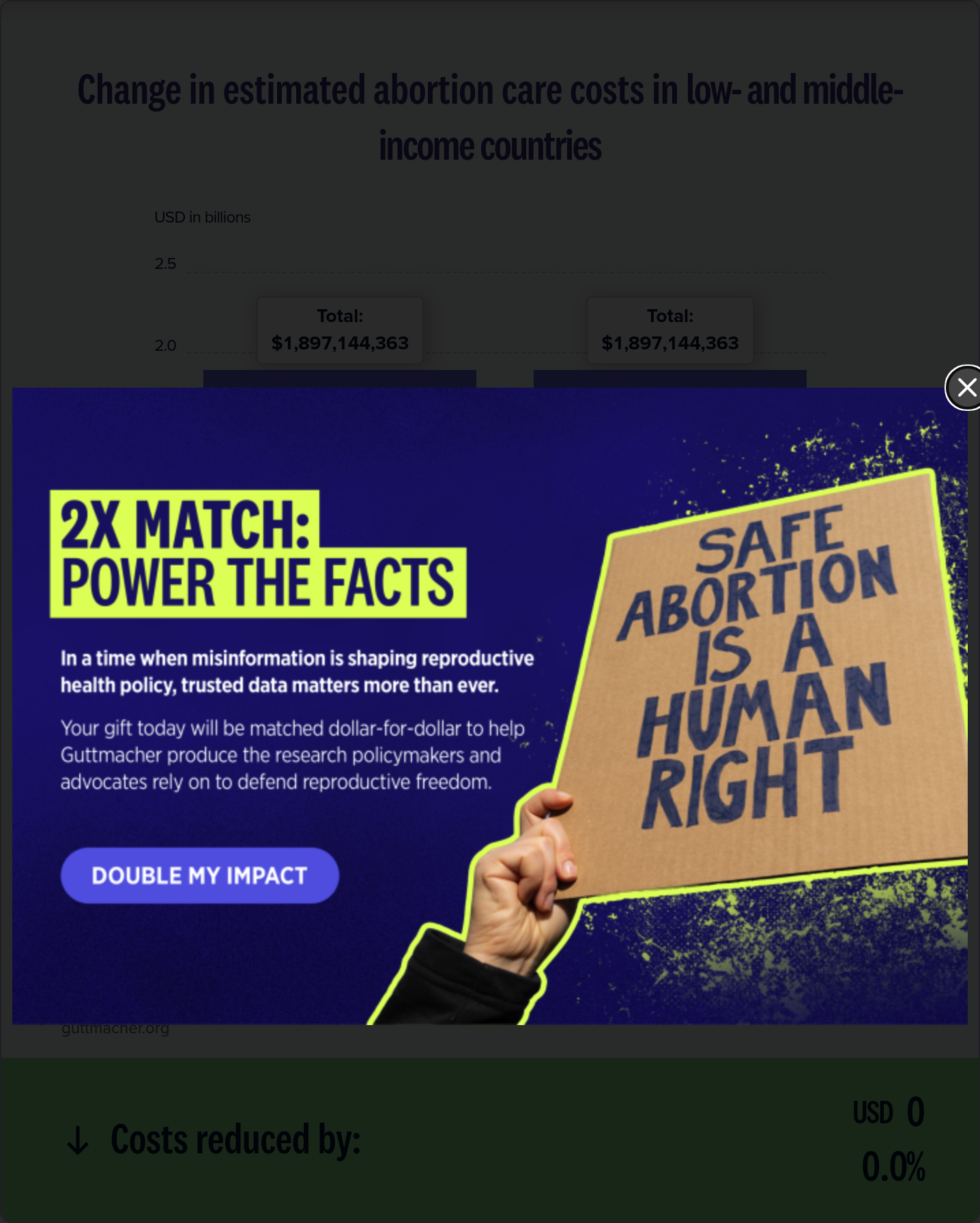 The Safe Abortion Calculator is based on analyses from Guttmacher's Adding It Up 2024 study, with updated cost, abortion and postabortion care data. See the calculator FAQ for further details.