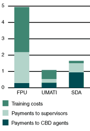 | Table 3. Average annual cost per CBD agent, by program, according to type of cost, 1995-1996 | |||